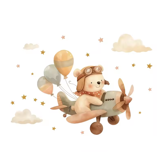 Muursticker 'Beer in Kleurrijke Luchtballon'