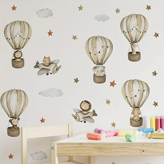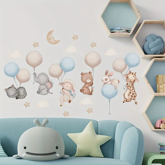 Muursticker 'Dieren aan gekleurde Ballonnen'