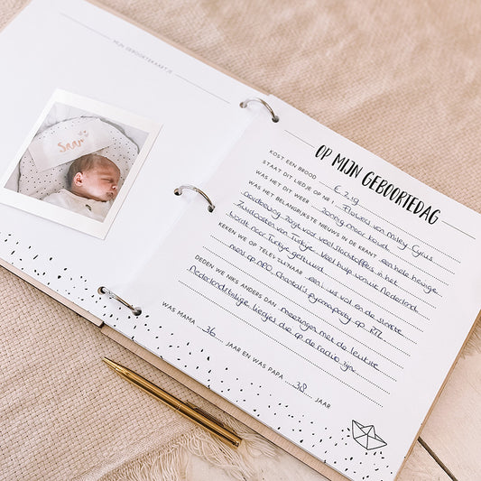 Houten Kraambezoekboek - Regenboog