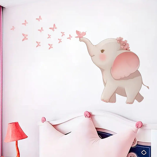 Muursticker 'Olifantje met Vlinders'