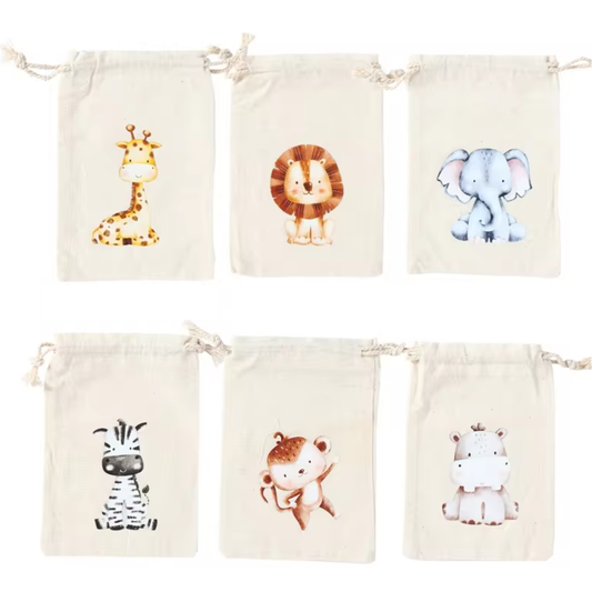 6 linnen Uitdeelzakjes 'Jungle Dieren'