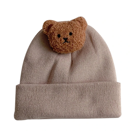 Gebreid Beanie Mutsje met Beer (Zwart)