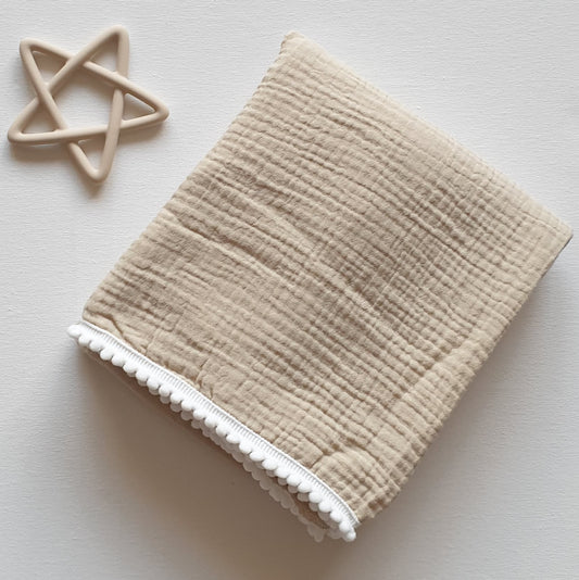 Hydrofiele Doek met Pomponnetjes (90x110 cm) - Beige