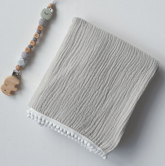 Hydrofiele Doek met Pomponnetjes (90x110 cm) - Grijs