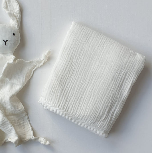 Hydrofiele Doek met Pomponnetjes (90x110 cm) - Wit