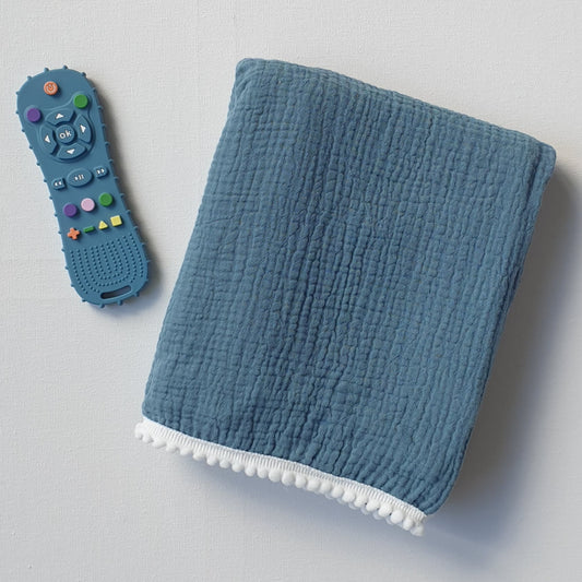 Hydrofiele Doek met Pomponnetjes (90x110 cm) - Petrol