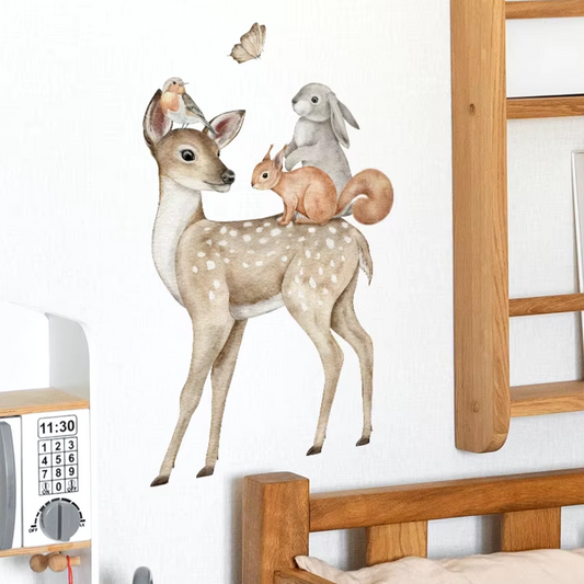 Muursticker 'Hertje met Konijn en Eekhoorn'