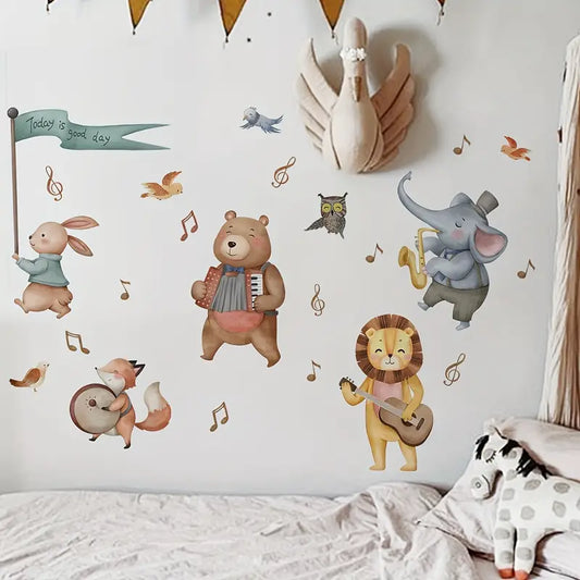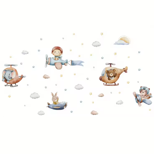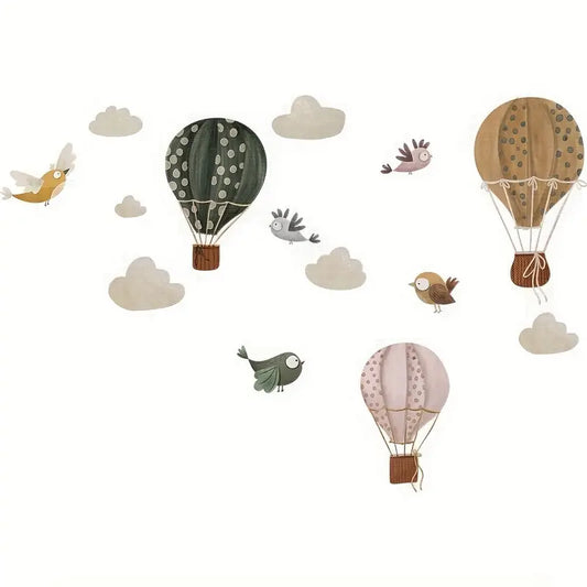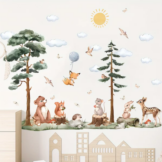Muursticker 'Bosdieren, Vogels en Vos aan Ballon'