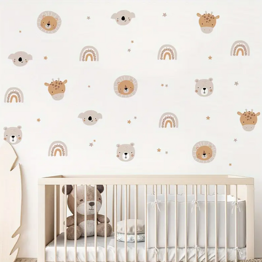 Muursticker 'Dierenboom met Beer in Hangmat'