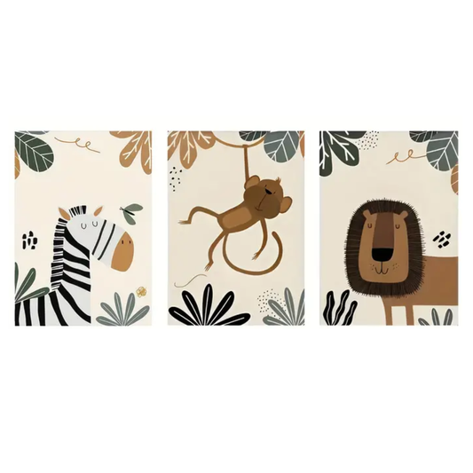 Set van 3 Canvas 'Cartoon Dieren Afrika'