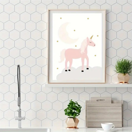 Canvas Poster 'Eenhoorn met Maan en Sterren'
