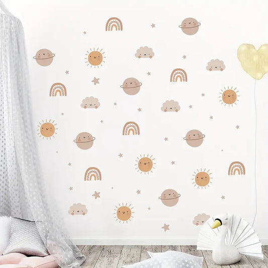 Muurstickers 'Planeten, Sterren en Regenbogen'