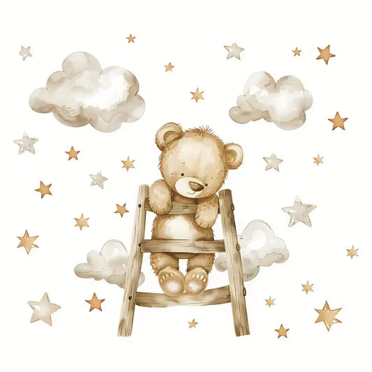 Muursticker 'Beer in Kleurrijke Luchtballon'