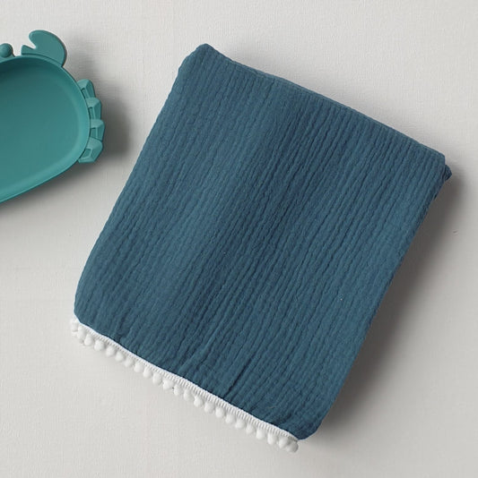 Hydrofiele Doek met Pomponnetjes (90x110 cm) - Teal