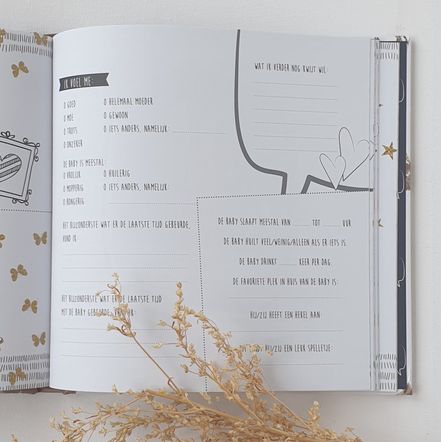 Dit invulboek biedt ruimte om alle belangrijke mijlpalen, zoals de eerste glimlach en het eerste woordje, vast te leggen en te koesteren voor de toekomst. Het is een waardevol geschenk voor ouders, maar ook voor jezelf om later op terug te kijken.