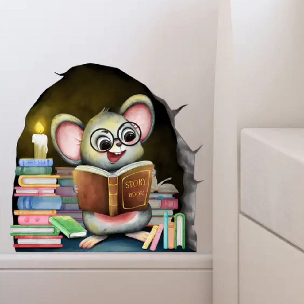 Weet je dat muizen erg slim zijn? Ze houden namelijk ontzettend veel van lezen. Deze muis met grote bril heeft een hele verzameling boeken die hij leest bij kaarslicht.