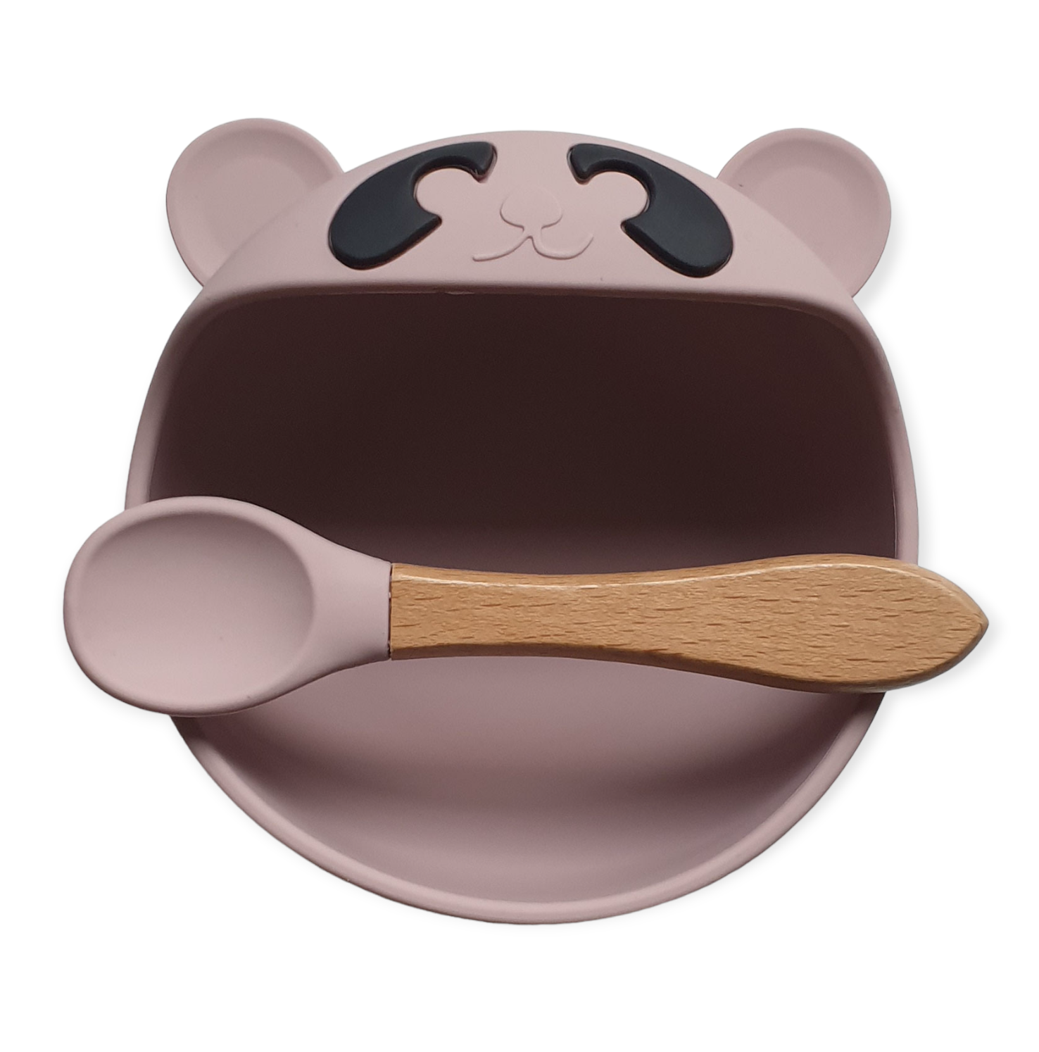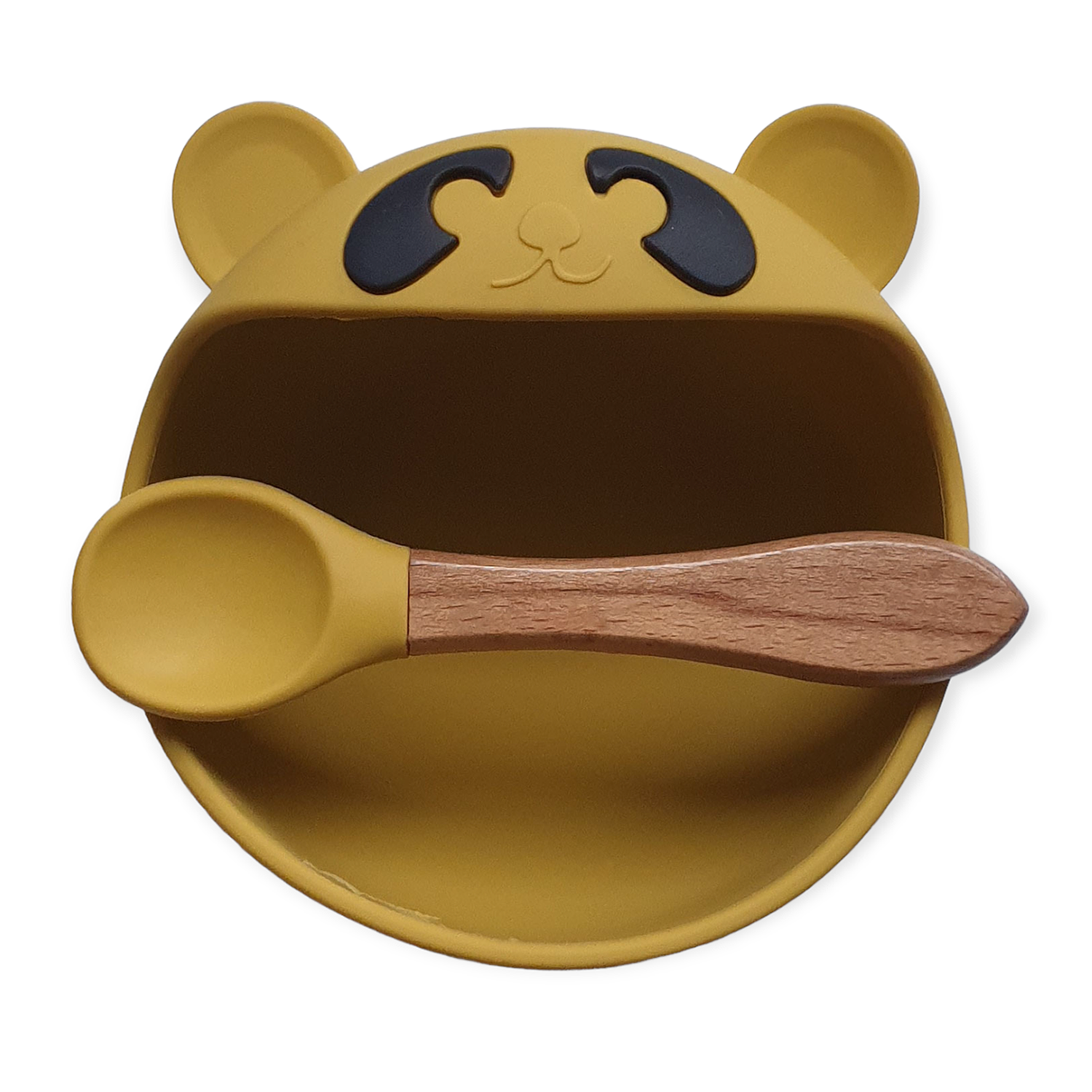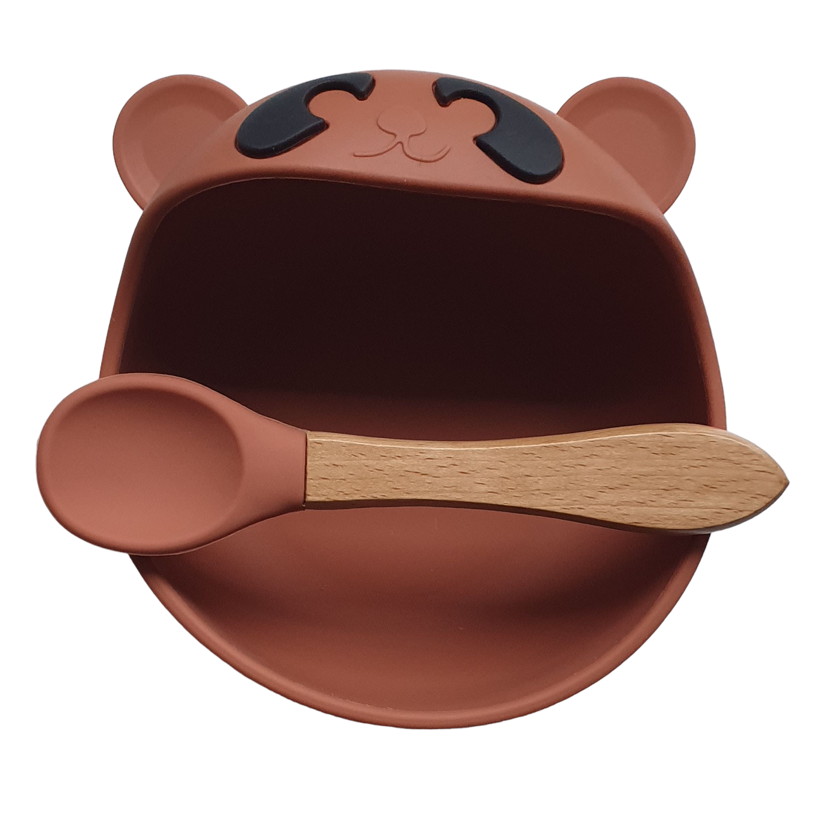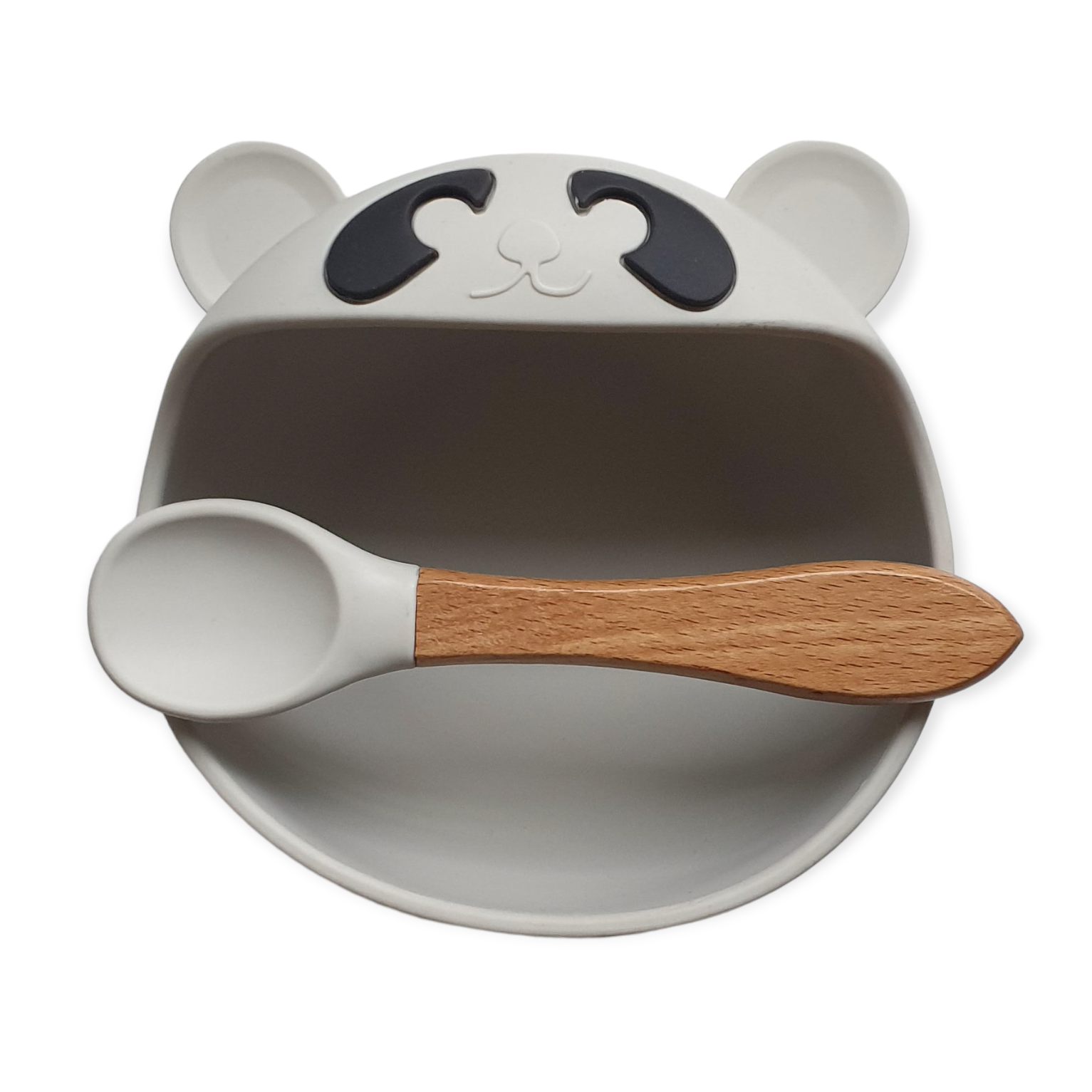 De beren kom wordt geleverd met een bijpassende lepel. De lichtgewicht (40 gram) lepel van siliconen heeft een brede houten handgreep en is daarom makkelijk te hanteren.