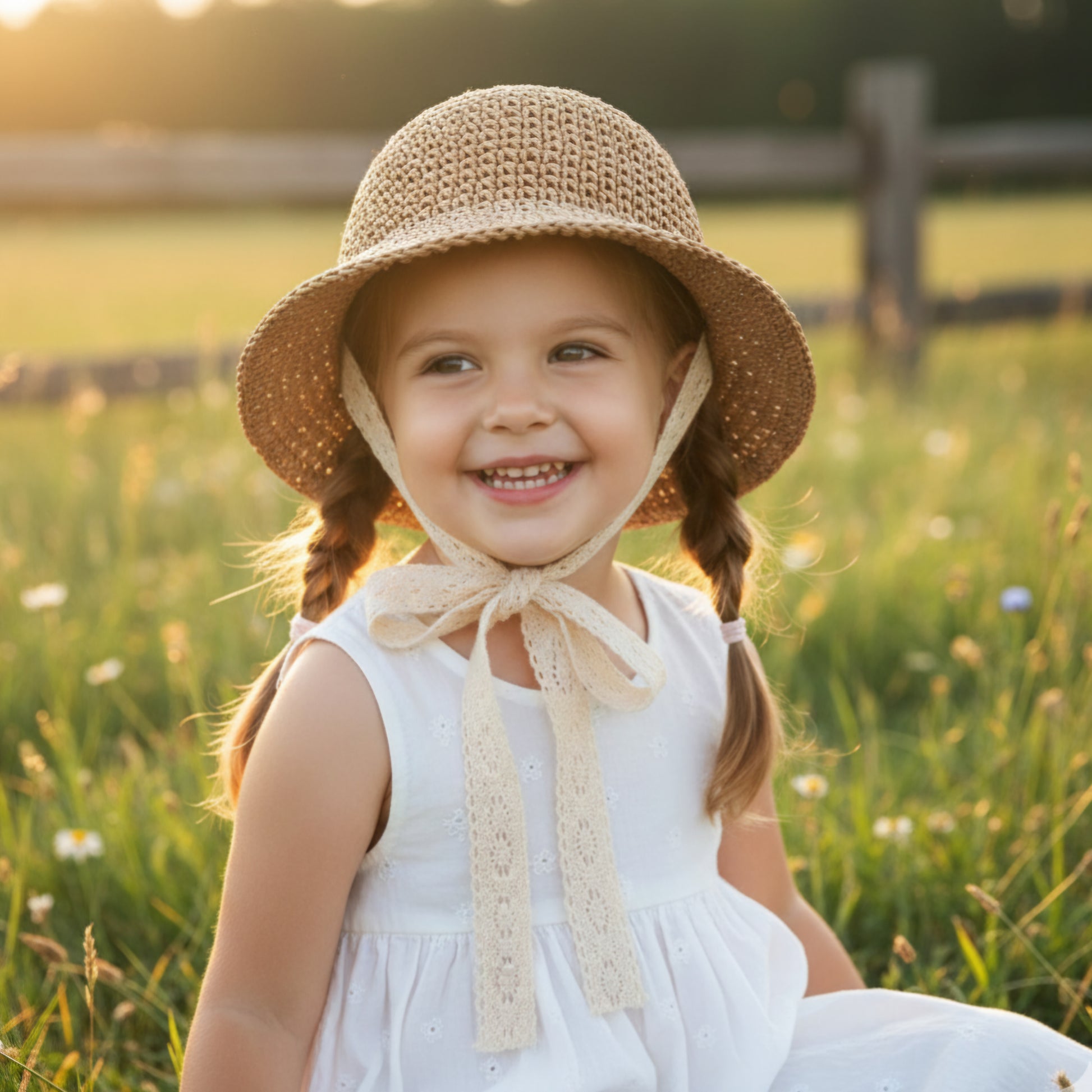 Het is bovendien lichtgewicht en gemakkelijk te dragen, perfect voor zonnige dagen op het strand of in het park. Voeg dit leuke gevlochten zonnehoedje aan de garderobe van je kleintje en geniet in stijl van de zon.